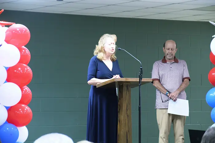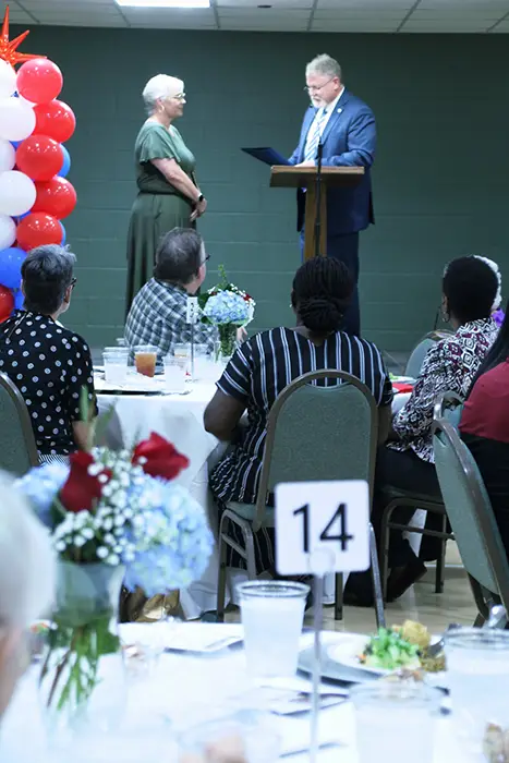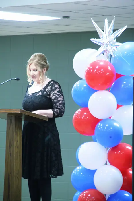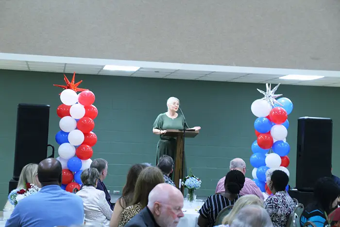 Connie Barnhart, Red River Chapter Chairwoman extends thanks to all in attendance and leads in singing “Holy, Holy, Holy”